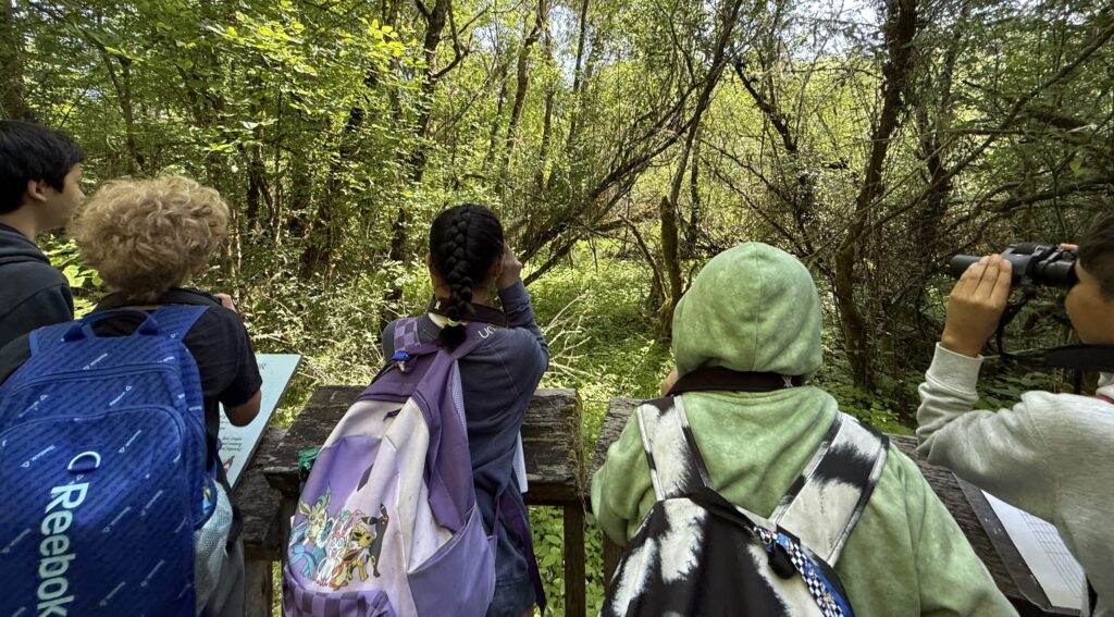 Eye on Nature trips occur in the spring and summer. Students visit Billy Frank Jr. Nisqually National Wildlife Refuge for two outdoor activities on the Refuge trail system: ethnobotany walks and nature mapping. During the ethnobotany walk, students learn about about the traditional cultural and medicinal uses of native plants. During the Nature Mapping activity, students record the animals they see along the trail. This data is later entered into the eBird database.